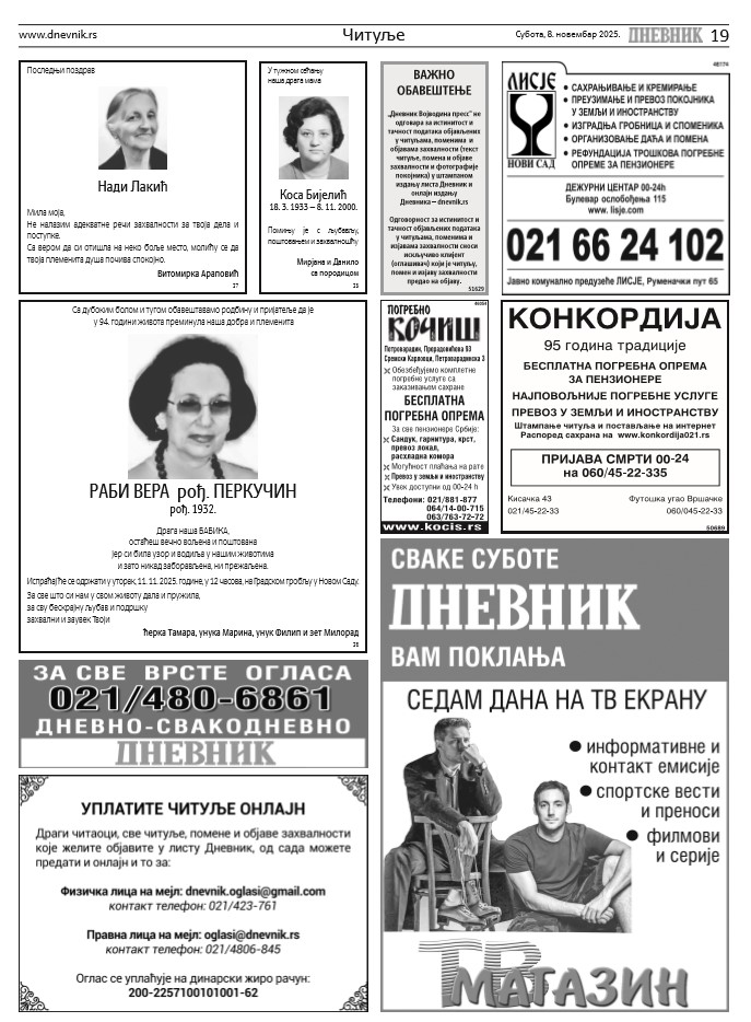 Sve detalje o predaji čitulja možete da pogledate OVDE, a cenovnik pogledajte OVDE.