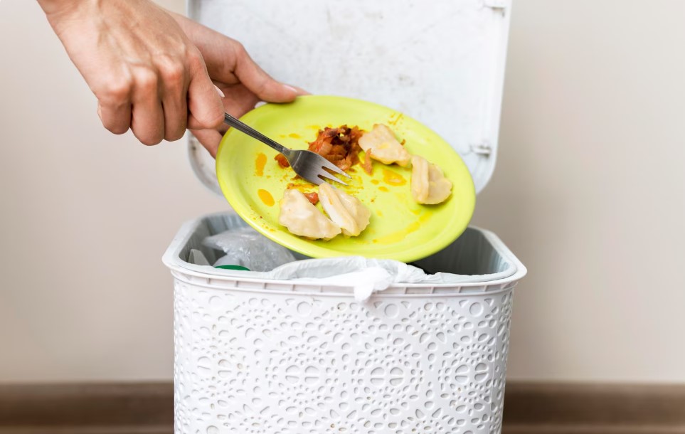 Bacanje hrane obuhvata hranu koja bi se još mogla jesti, kao i razne kore, kosti, koštice, ljuske jaja i slične supstance koje se ne smatraju jestivim i koje je teško sprečiti da završe kao otpad.