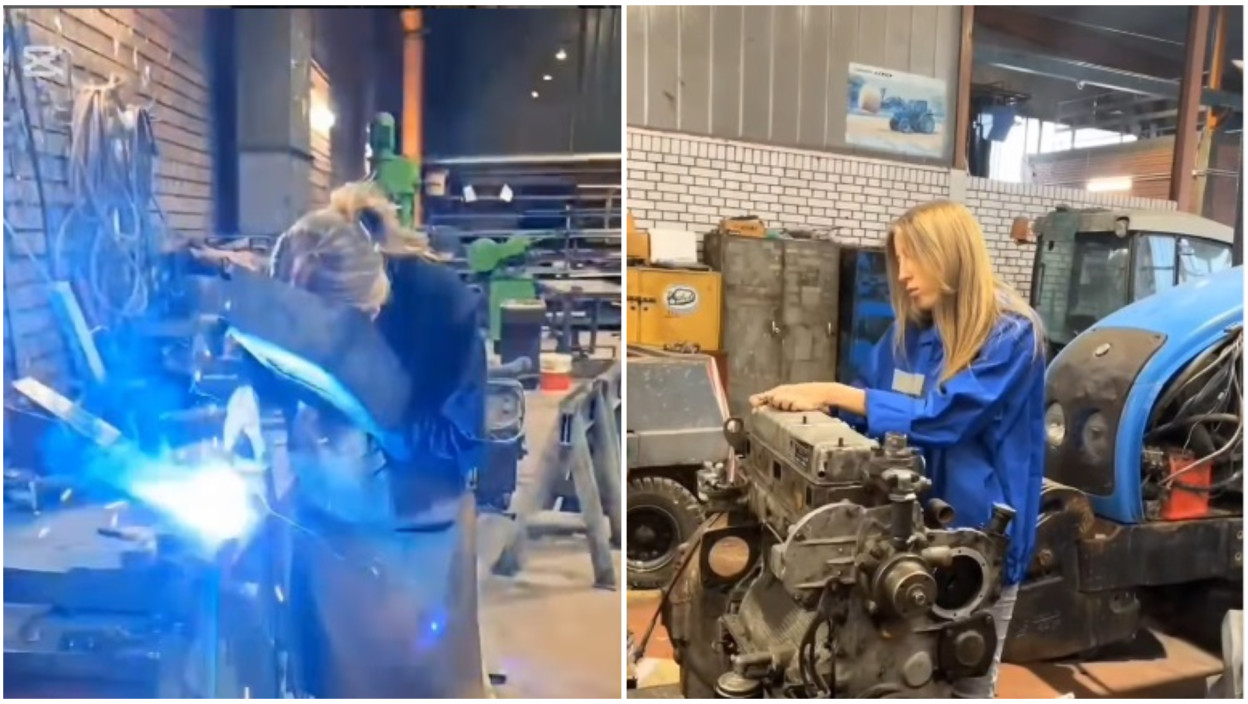 Osim toga što je zaposlena u centru za održavanje poljoprivredne mehanizacije, ova devojka redovno učestvuje i u poslovima na farmi i njivi.