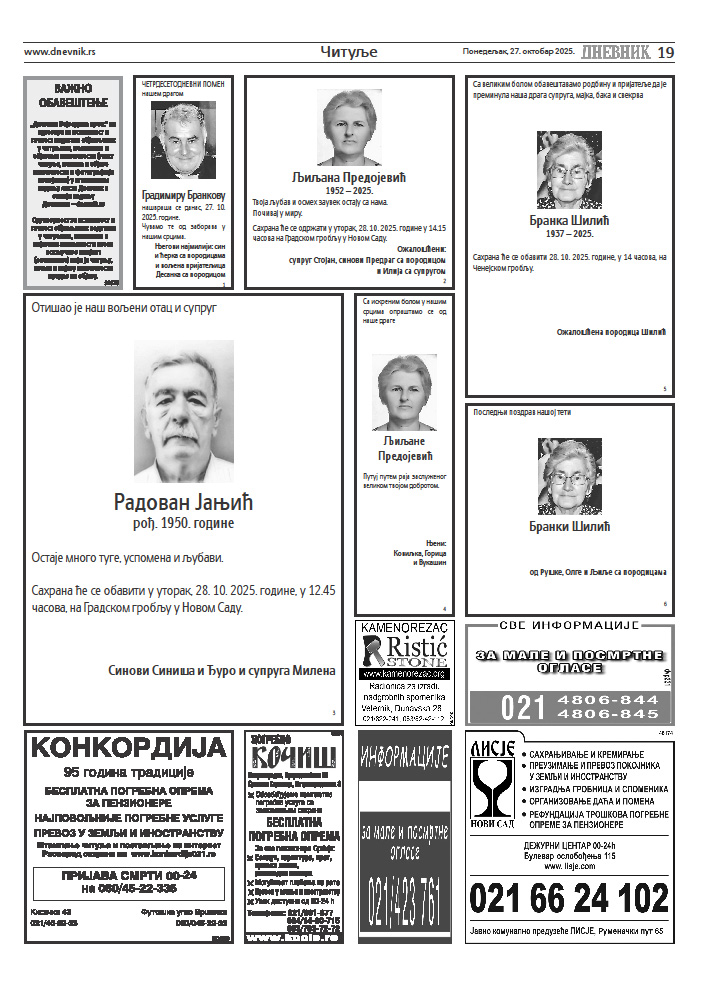 Sve detalje o predaji čitulja možete da pogledate OVDE, a cenovnik pogledajte OVDE.