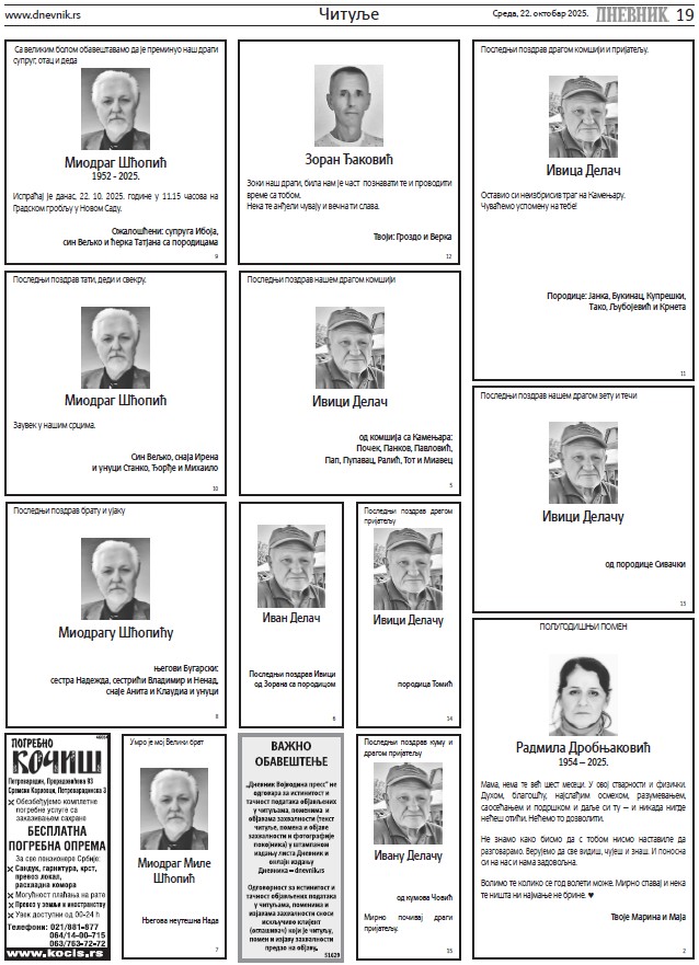 Sve detalje o predaji čitulja možete da pogledate OVDE, a cenovnik pogledajte OVDE.