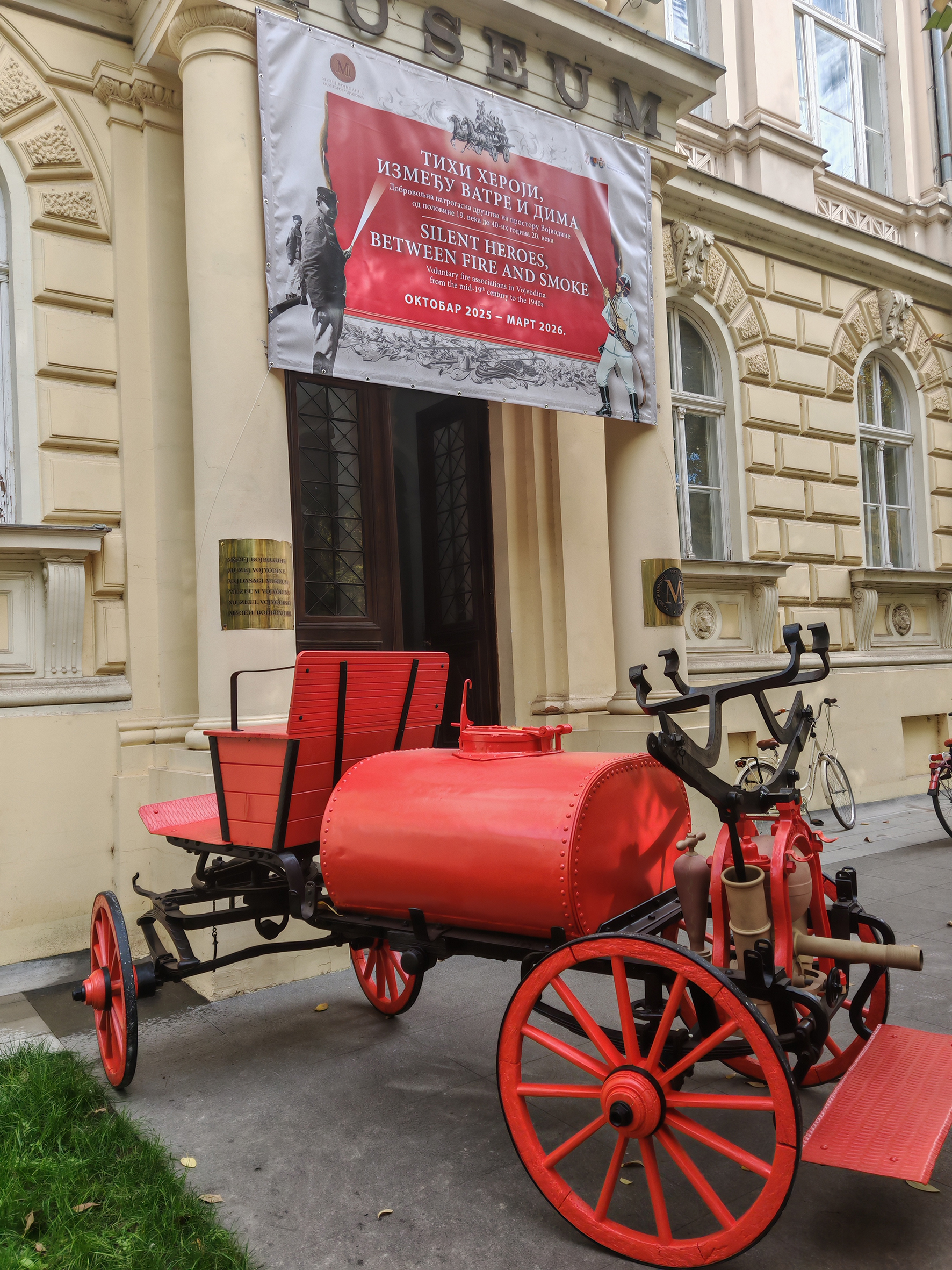 – Sticajem okolnosti, u trenutku kada smo tek počeli da razgovaramo o izložbi, zazvonio je telefon i iz novosadskog Dobrovoljnog vatrogasnog društva „Laza Kostić” su nas obavestili da imaju dva stara vatrogasna vozila. I želeli su da znaju da li smo kao Muzej Vojvodine zainteresovani da nam ih poklone, da preuzmemo brigu o njihovom čuvanju, da više ne kisnu i ne propadaju na krovu vatrogasnog doma. Vozila zaista jesu bila u katastrofalnom stanju, praktično je sačuvana bila samo metalna konstrukcija, dok su drevenarija i točkovi propali, te je već i zbog toga je bila komplikovana akcija njihovog spuštanja sa krova i prenošenja u Muzej. Ali sada su ona potpuno restaurirana i biće važan deo naše izložbe – navodi Čarna Milivojević.