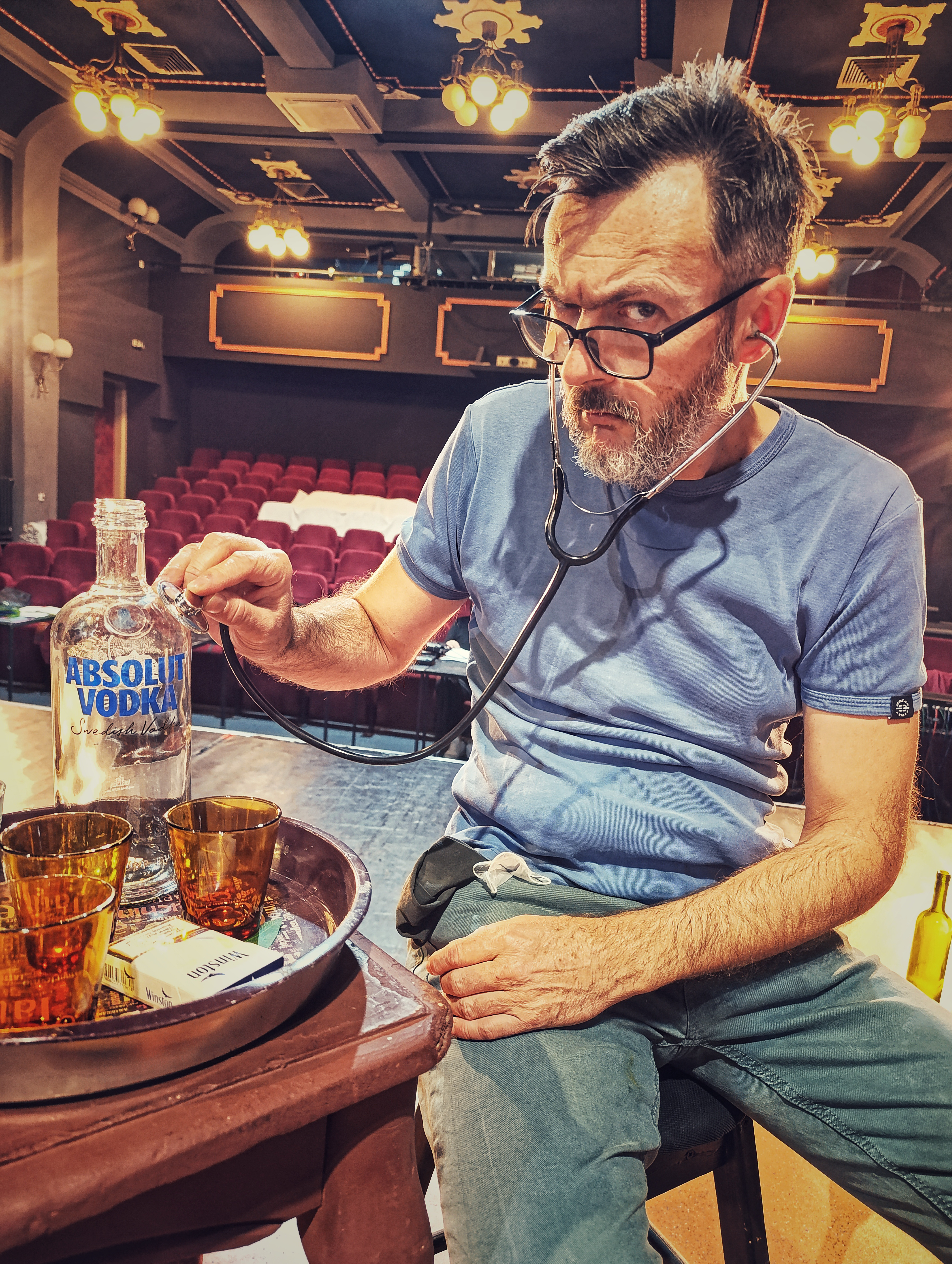 Gostujući glumac Gabor Mesaroš iz Subotice koji se posle 17 godina i studija u Novom Sadu ponovo našao na sceni Novosadskog pozorišta, prvi put igra Čehova i prvi put Andreja: