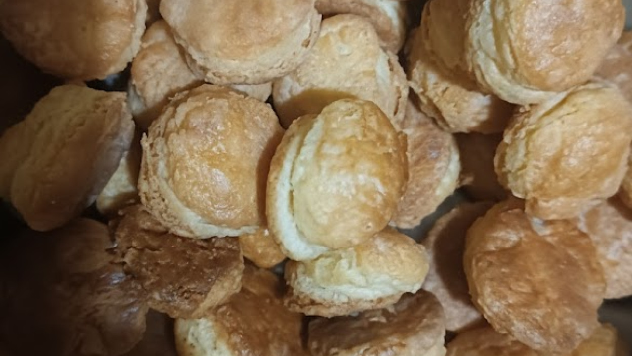 Rernu zagrejte na 200 stepeni. U jednoj posudi pomešajte brašno sa praškom za pecivo i dodajte so. Zasebno pomešajte rendanu mocarelu i krem sir, pa otopite na pari. Dodajte 2 jajeta u otopljen sir pa dobro promešajte. Ovu smesu dodate u brašno pa mesite rukama. Navlaženim rukama oblikujte male pogačice. Zatim premažite jajetom pa ređajte na pleh obložen pek papirom. Pecite pogačice oko 8 minuta, u rerni zagrejanoj na 200 stepeni.