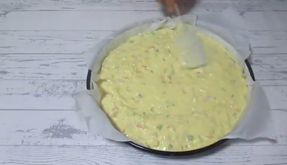 4. Pečenje: Tepsiju (30×40 cm) nauljiti i posuti brašnom. Smesu ravnomerno rasporediti i peći u zagrejanoj rerni na 200°C oko 20–25 minuta, dok pita ne porumeni i ne dobije lepu zlatnu koricu.