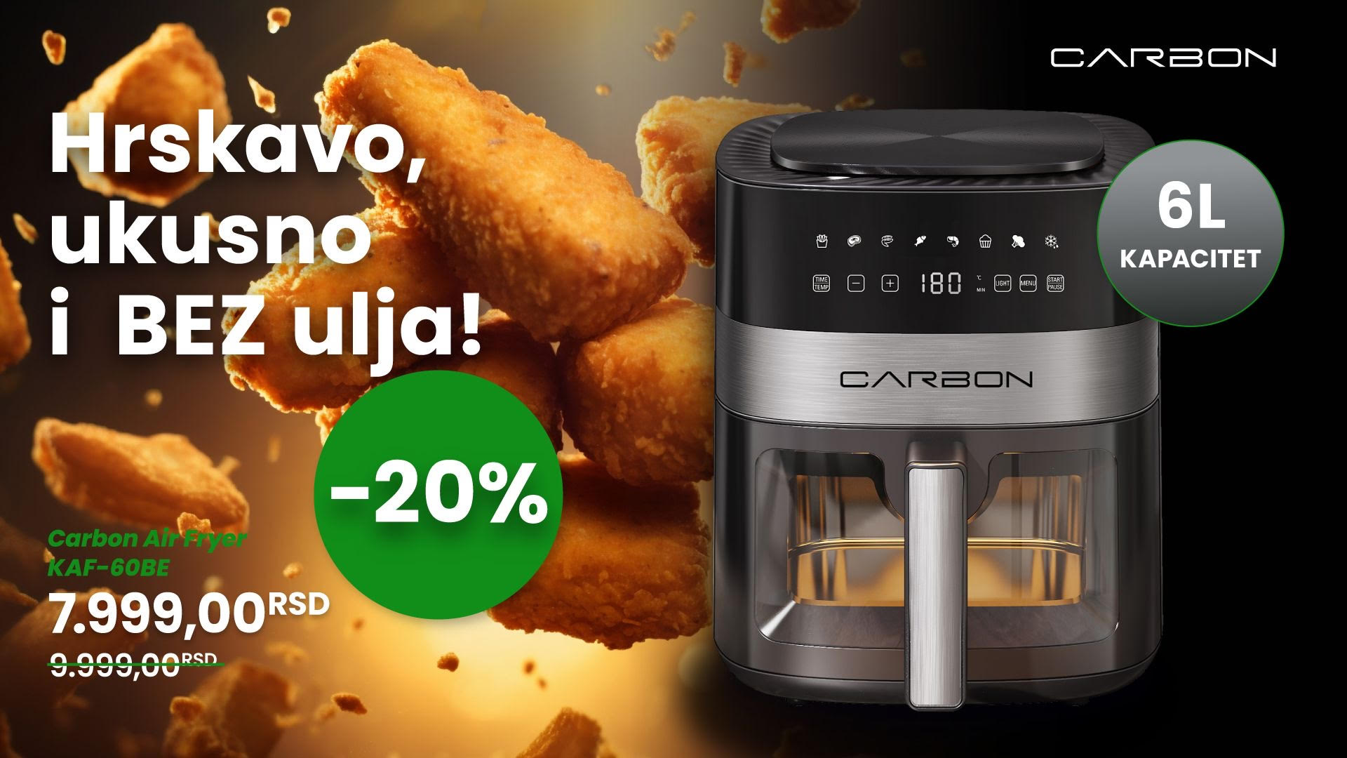 Ukoliko vam treba kompaktnija verzija zdravog obroka pogledajte Carbon Air Fryer Compact Size FR-CA1701B.