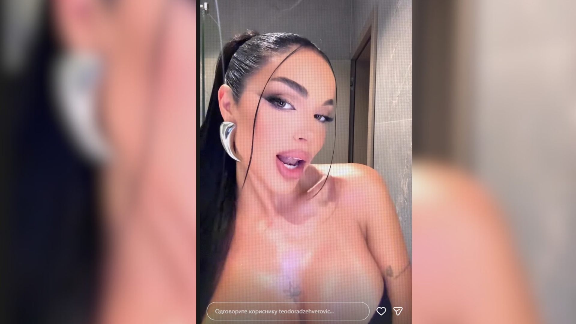 Naime, Teodora se snimila u provokativnom izdanju ispred ogledala u crnom korsetu koji je dodatno istakao njeno bujno poprsje.