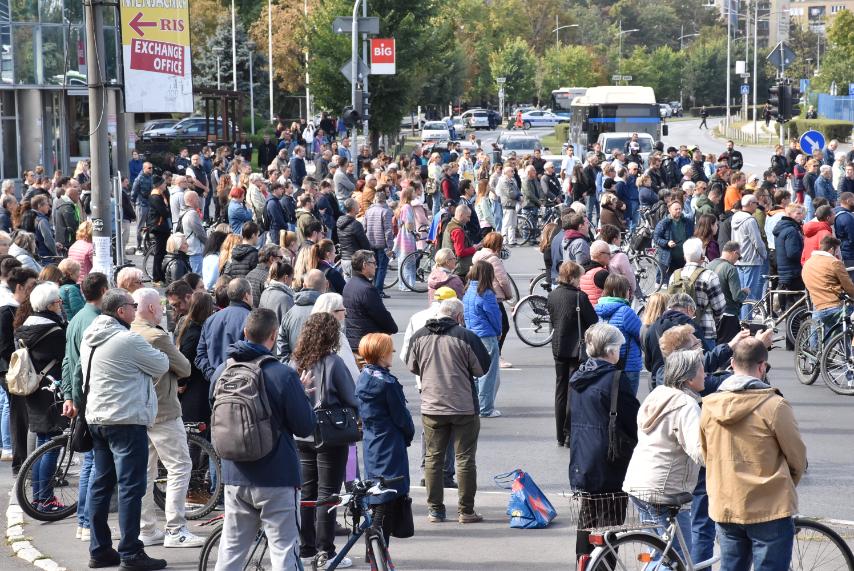 Novosađani su se okupili na raskrsnici kod Železničke stanice, kao i na Trgu slobode.
