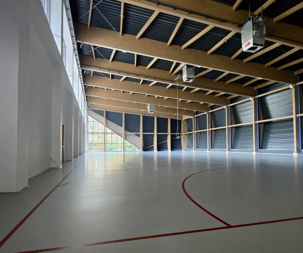 U fiskulturnoj sali, dimenzija 44 x 22 metra, nalazi se teren za rukomet, košarku i odbojku