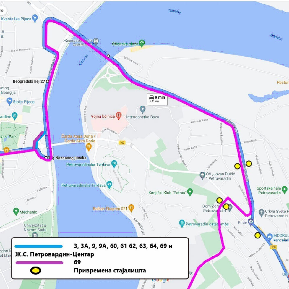 Linije 3, 3a, 9, 9a, 60, 61, 62, 63, 64 i Železnička stanica Petrovaradin – Centar