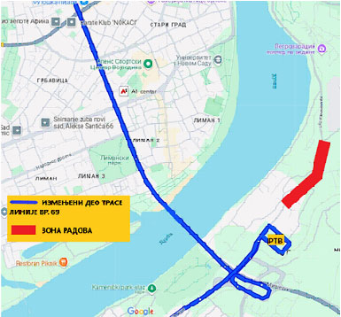 U skladu sa rešenjem Gradske uprave za saobraćaj i puteve, od 05. do 19. novembra privremeno će biti izmenjena trasa autobuske linije broj 69.