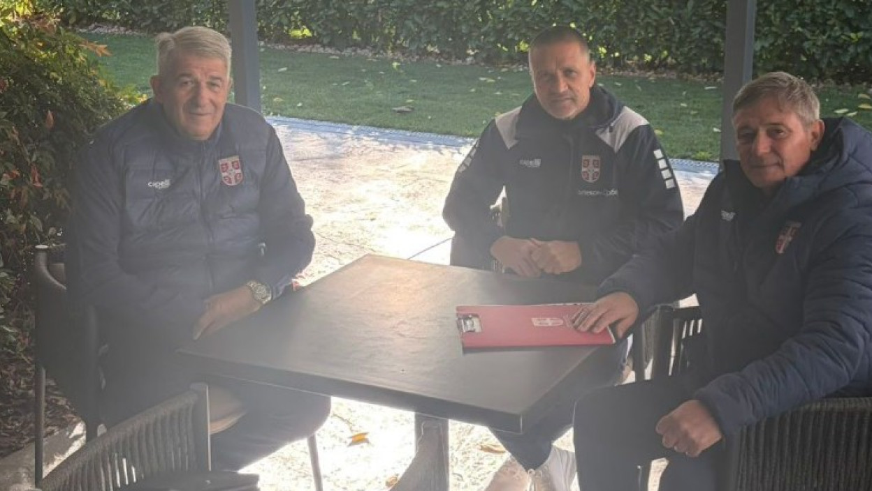 Na jednom mesti dve selekcije, ljudi koji imaju najveću odgovornost za njihove rezultate. Nekad saigrači u reprezentaciji, istinske igračke legende, danas selektori i direktor. Dragan Stojković i Zoran Mirković, odnosno Stevan Stojanović. Za jednim stolom „A“ i Mlada reprezentacija (U21) koja se priprema (treninge održava u SC FSS) za još jednu proveru pred Evropsko prvenstvo 2027. sada protiv Rumunije u Aradu.