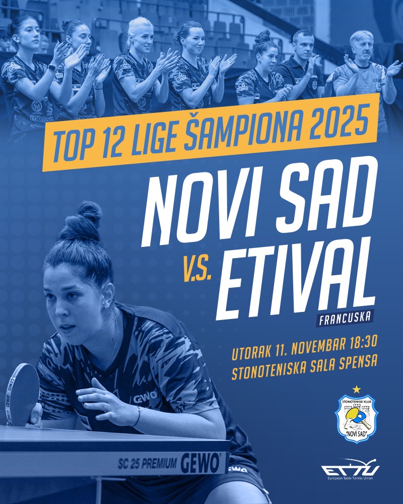 Stonoteniserke Novog Sada u utorak, 11. novembra, od 18.30 časova u stonoteniskoj sali SPENS-a dočekuju francuski Etival u meču koji može biti ključan u borbi za plasman u četvrtfinale Lige šampiona.