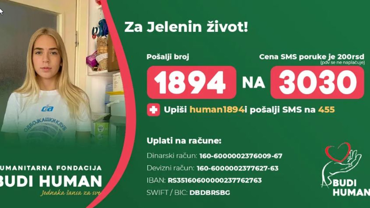 Jelenina porodica i prijatelji se nadaju da će, uz podršku dobrih ljudi, uspeti da joj obezbede šansu za lečenje i oporavak.