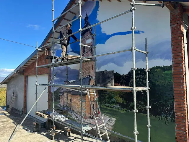 Čakajac, slikar iz Slatine, najpoznatiji je po svojim akvarelima Morave, Čačka i planine Jelice, a sada je prvi put zakoračio u muralizam velikog formata, i to na zidu porodičnog domaćinstva u Lipnici.