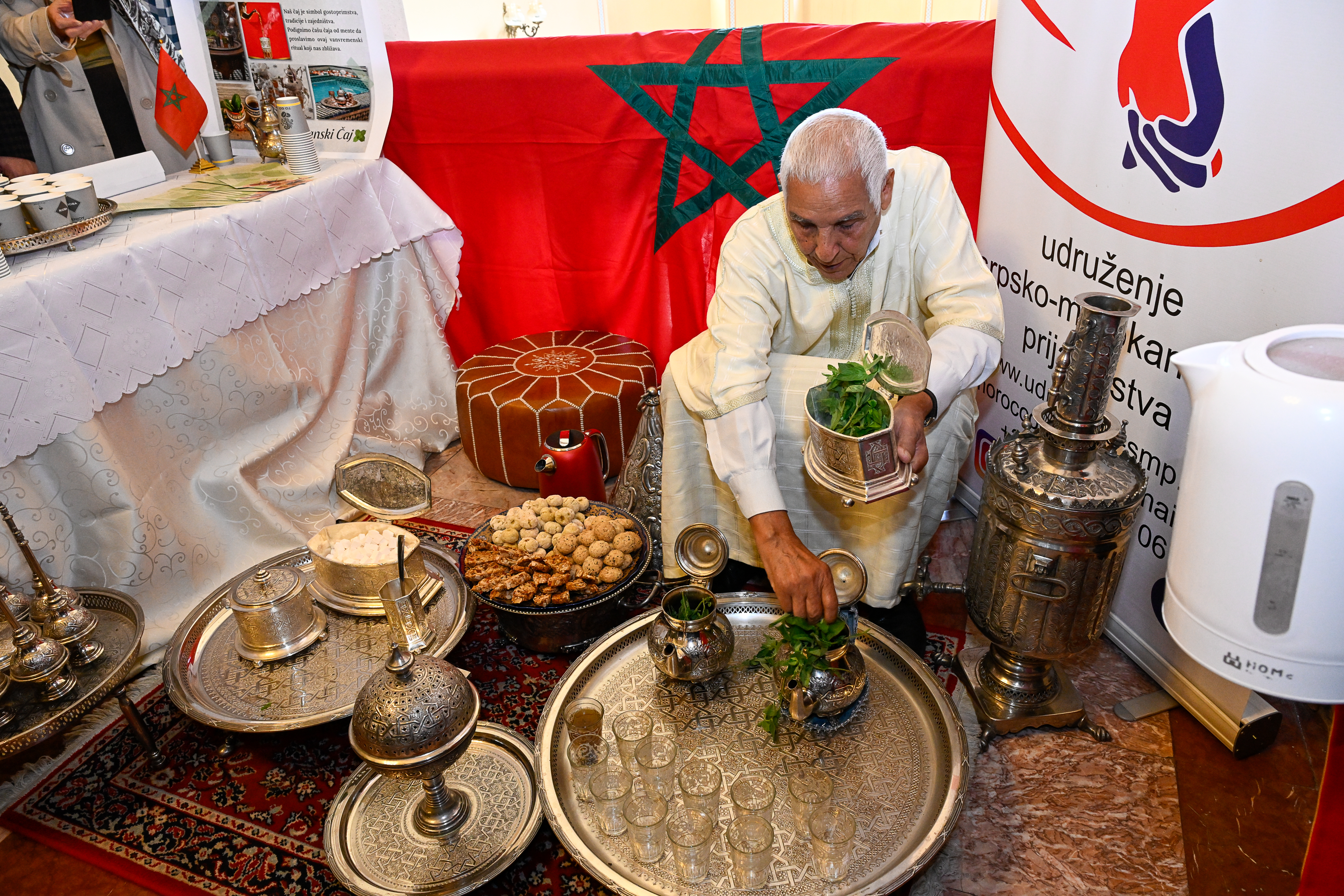 - Ko god dođe mora da ga ispije, to je znak gostoprimstva i prijateljstva. Predanje kaže da je zeleni čaj ušao u Maroko u 17. veku, ali su različite teorije na koji način. Marokanci su zelenom čaju dali drugi šmek dodajući metvicu ili mentu koja mu daje poseban ukus. Pije se svakodnevno, tri puta na dan i po dve-tri čaše jer je dosta sladak uz neke kolačiće – objasnio je Harmus demonstrirajući pripremu na vrlo autentičan način.