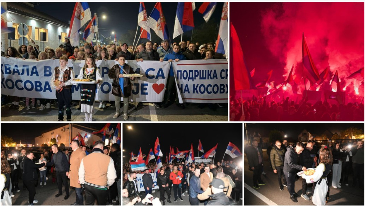 KRALJEVO: Grupa od 60 Srba iz AP Kosova i Metohije koja već dva dana pešači ka Novom Sadu, na skup protiv blokada, stigla je večeras u Kraljevo gde im je priređen doček, uz počasni špalir sa bakljama i pesmom "Veseli se srpski rode".