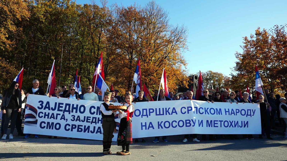 Mešatani Gornjeg Milanovca su svoje sunarodnike iz južne pokrajine dočekali tradicionalno, uz pogaču, so i poruke podrške, ali bez muzike i pompe, budući da je danas Dan žalosti zbog tragedije koja se dogodila pre tačno godinu dana u Novom Sadu.