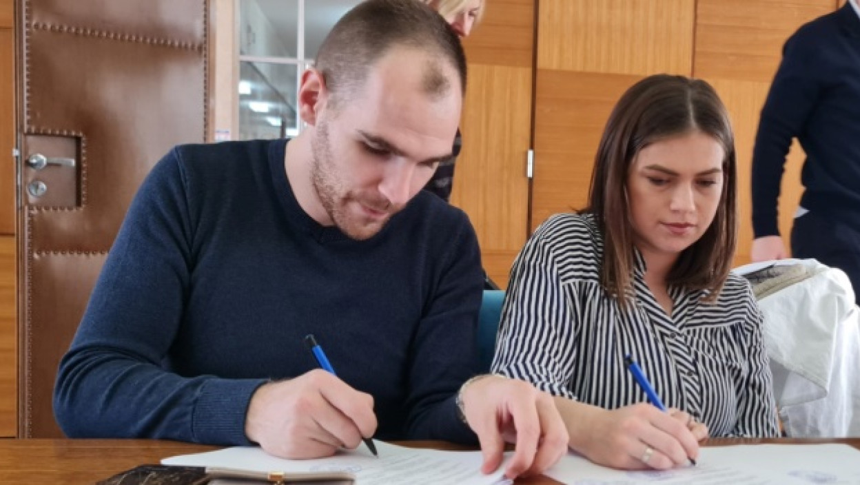 Trojni ugovor potpisali su novi vlasnici kuće, Tamara Đukić, državni sekretar u Minstarstvu za brigu o selu, i Milan Glušac, predsednik opštine Vrbas.
