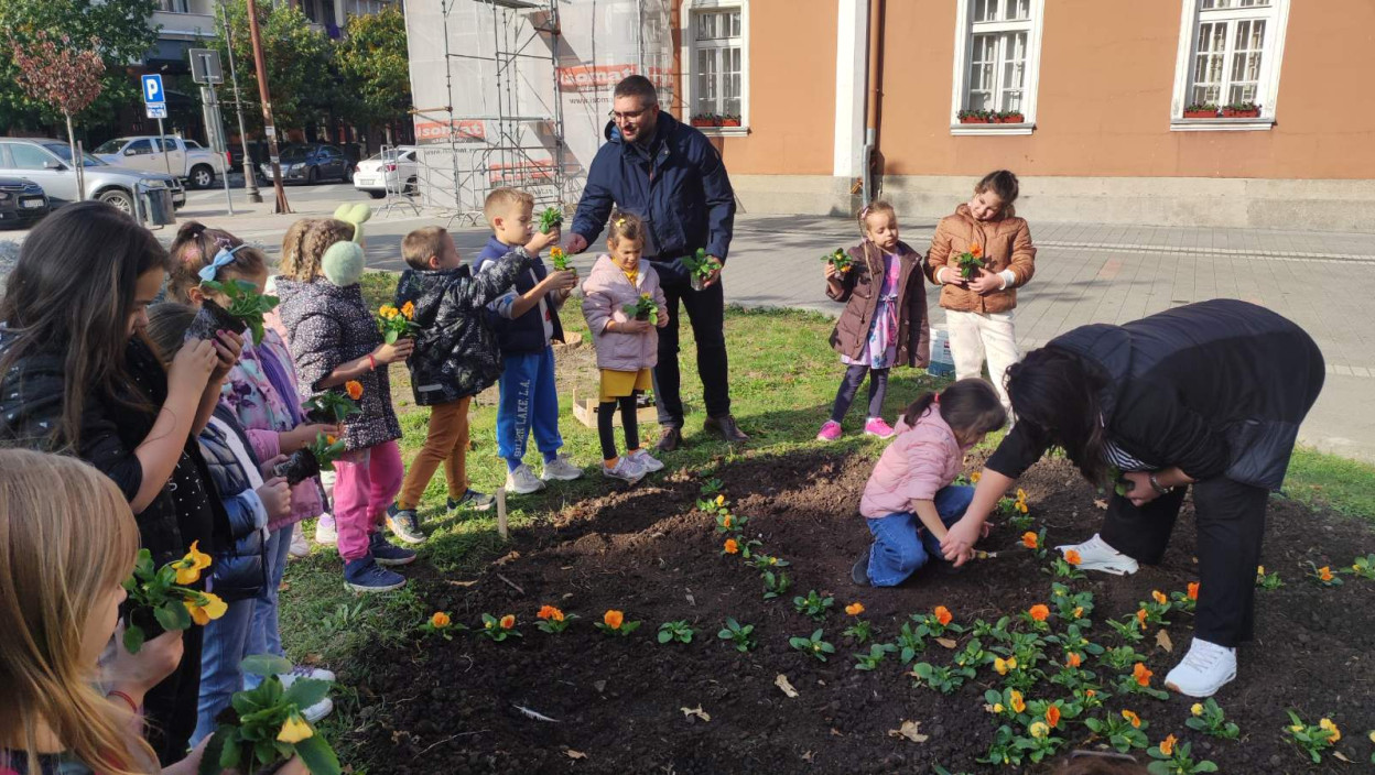 U akciji su učestvovali najmlađi sugrađani, mališani iz PU „Bubamara“, koji su, uz pomoć vrednih radnika službe „Zelenila” i podršku rukovodioca službe Marijete Bande, zasadili jedno od cvetnih polja u centru grada.