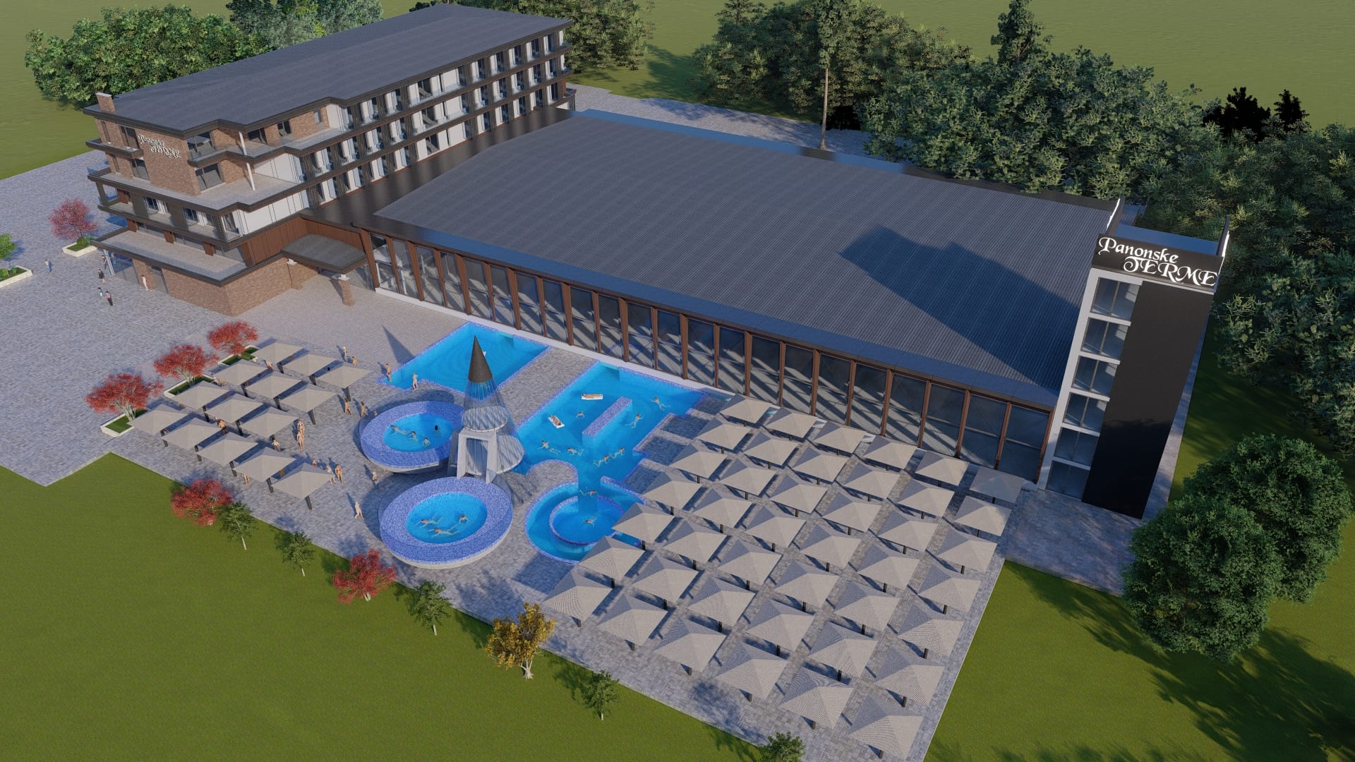 Za „Panonske terme” planiran je objekat od 16.000 kvadratnih metara, i biće izgrađena tri zatvorena i tri otvorena bazena, prateći sadržaji, restorani, kongresne sale, igraonice, teretane i reč je o prvoj fazi izgradnje akva-parka. U prvoj fazi će u hotelu biti zaposleno 150 radnika. Druga faza investiranja podrazumevaće još zatvorenih i otvorenih bazena, kao i dodatno proširenje smeštajnih kapaciteta.