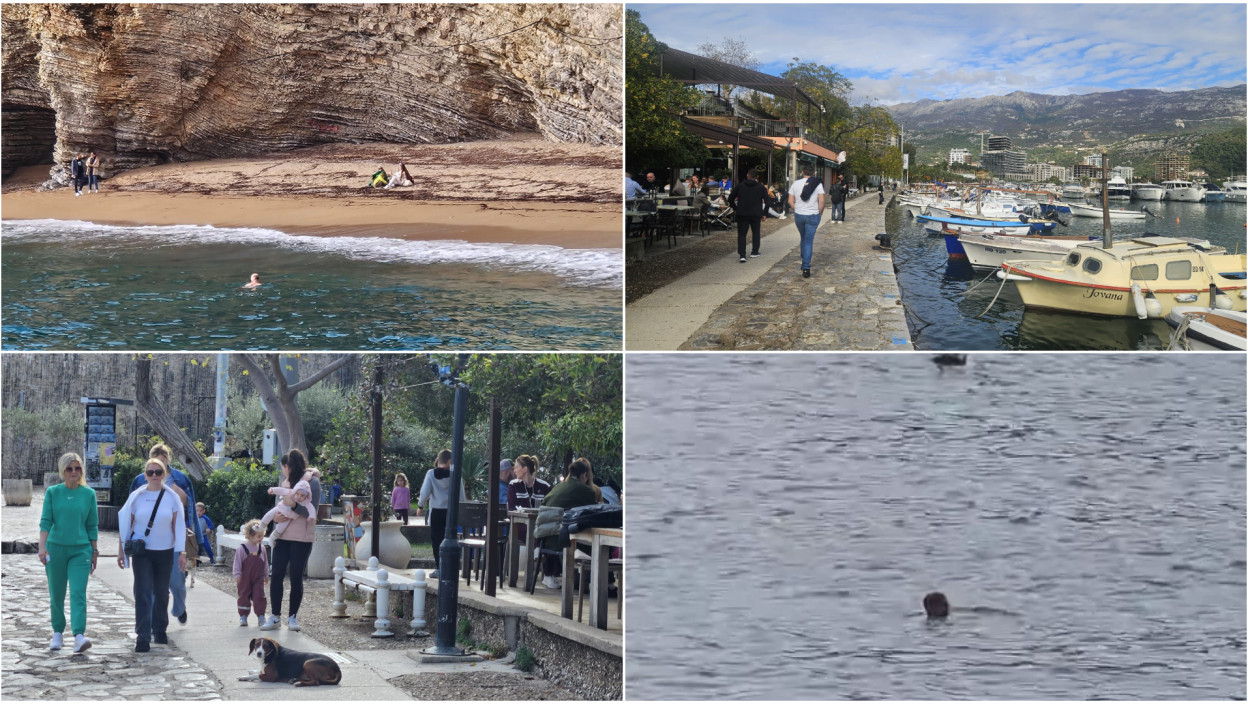 Овде је заиста прелепо, време је дивно. Као да смо из јесени дошли у пролеће. Има пуно људи из Србије овде, срели смо их доста, каже Алем из Пријепоља који продужени викенд са породицом проводи на Црногорском приморју.