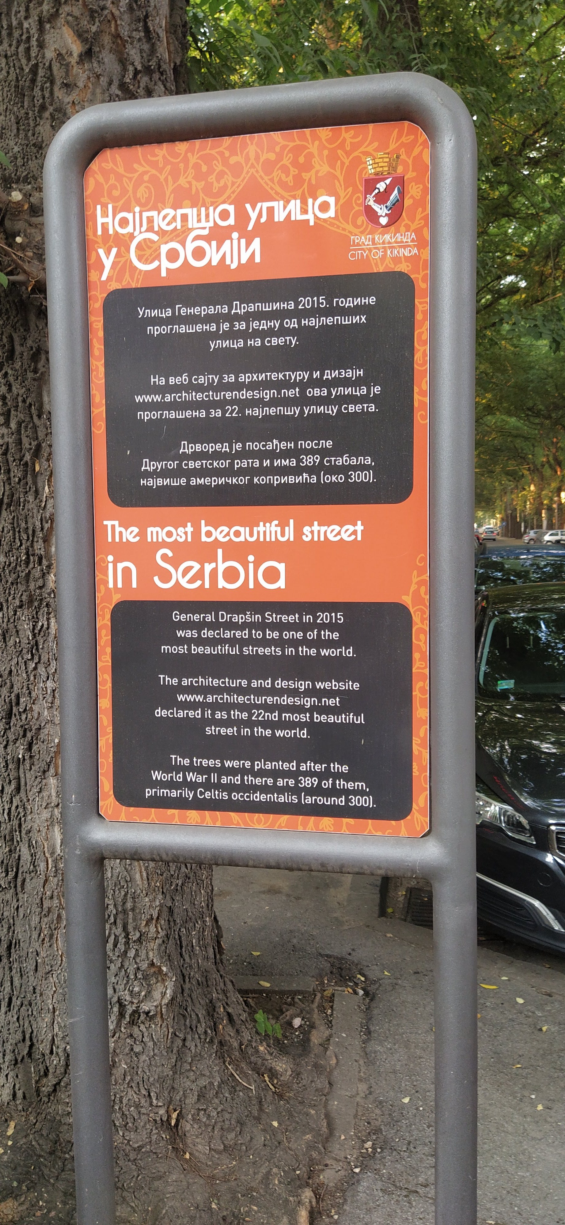 Улицу генерала Драпшина у Кикинди краси дрворед дугачак око два километра који је сада обукао своје јесење рухо и изгледа као из бајке, са 389 стабала копривића, липе, јавора и дуда.