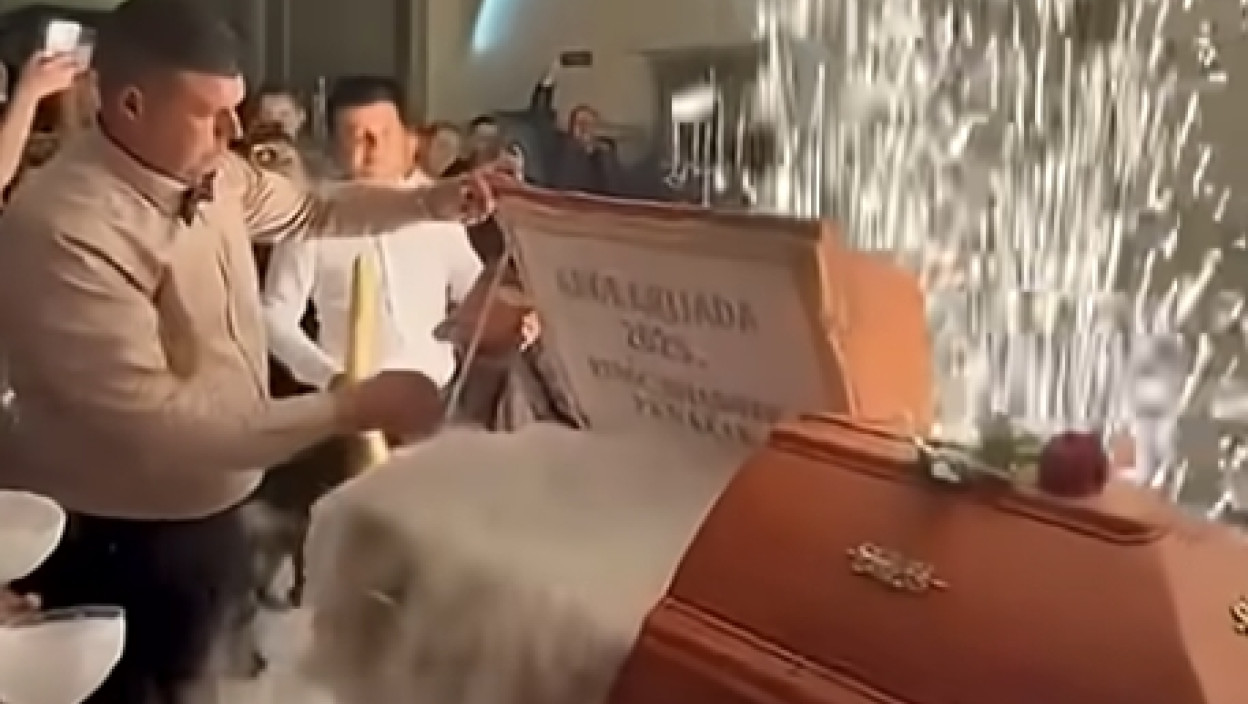 И можда би нам то и промакло да нисмо погледали вирални снимак на ТикТоку на коме се уз звук Посмртног марша износи и сервира торта, док около раде прскалице, а из сандука излази дим.