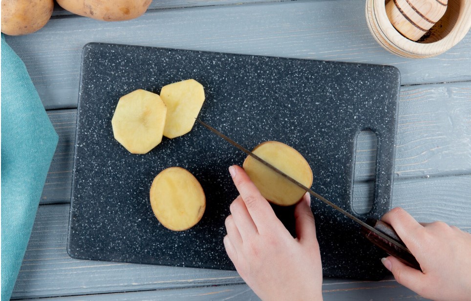 • Исеците кромпир на коцкице (не морате га љуштити), ставите га у блендер, додајте мало воде и добро изблендирајте док не постане глатко.