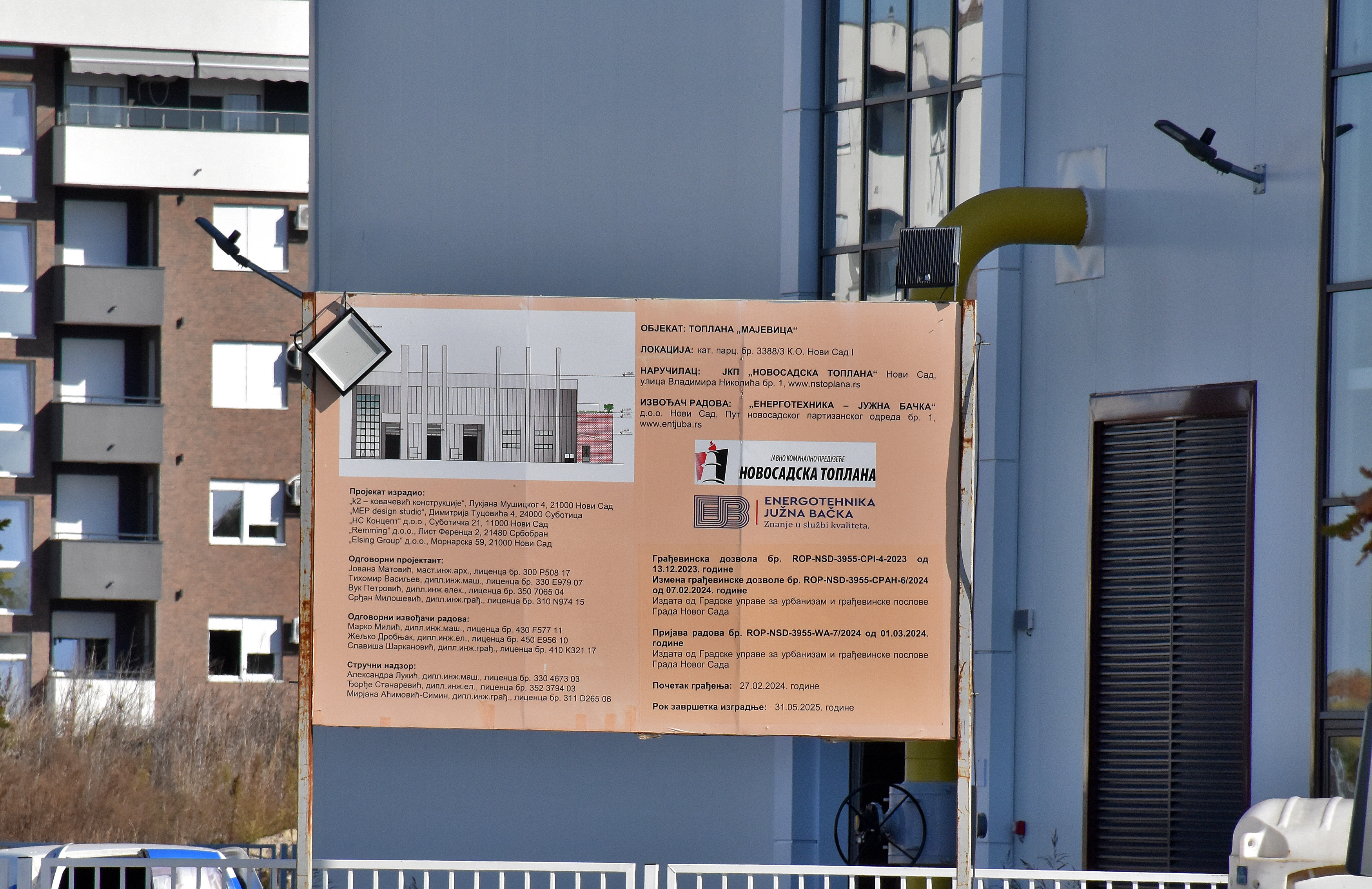 Додаје да су сви грађевински, машински и електро радови на изградњи нове топлане „Мајевица” на Булевару Европе завршени. Објекат је прикључен на електроенергетску инфраструктуру и очекује се прикључење топлане на гасну инфраструктуру, завршна функционална испитивања, тестирања и пуштање у рад до краја године. То је капитални пројекат Града Новог Сада, а вредност инвестиције је 1.073.800.000 динара.