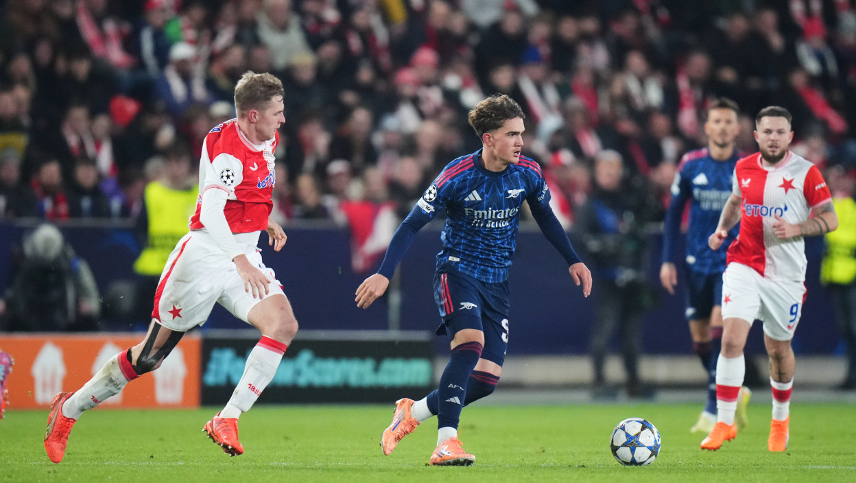Имао је Арсенал почетних проблема у Прагу. Деловале су Тобждије безопасно, изненадио их је пресинг Славије, која је стајала изузетно високо. Претила је домаћа екипа у пар наврата, али су гости искористили поклон који им је стигао средином првог дела. Провод је играо руком у казненом простору и досуђен је пенал за екипу из Лондона. Сака је преузео одговорност и довео Арсенал у вођство. Тобџије су малтене решиле сусрет одмах по изласку из свлачионице. Лоше се поставила одбрана Славије, Тросар је убацио лопту, а усамљени Мерино, који је играо као шпиц, рутински погодио мрежу. Тачку на тријумф ставио је Шпанац у 68. минуту. Голман Марковић је катастрофално проценио лет после центаршута Рајса, а Мерино је инстиктивно одреаговао и дошао до другог гола. Резултат се није мењао до краја меча. Треба напоменути да је Арсенал исписао историју, пошто је Артета увео 15-годишњег Макса Даумана, који је постао најмлађи играч у историји Лиге шампиона.