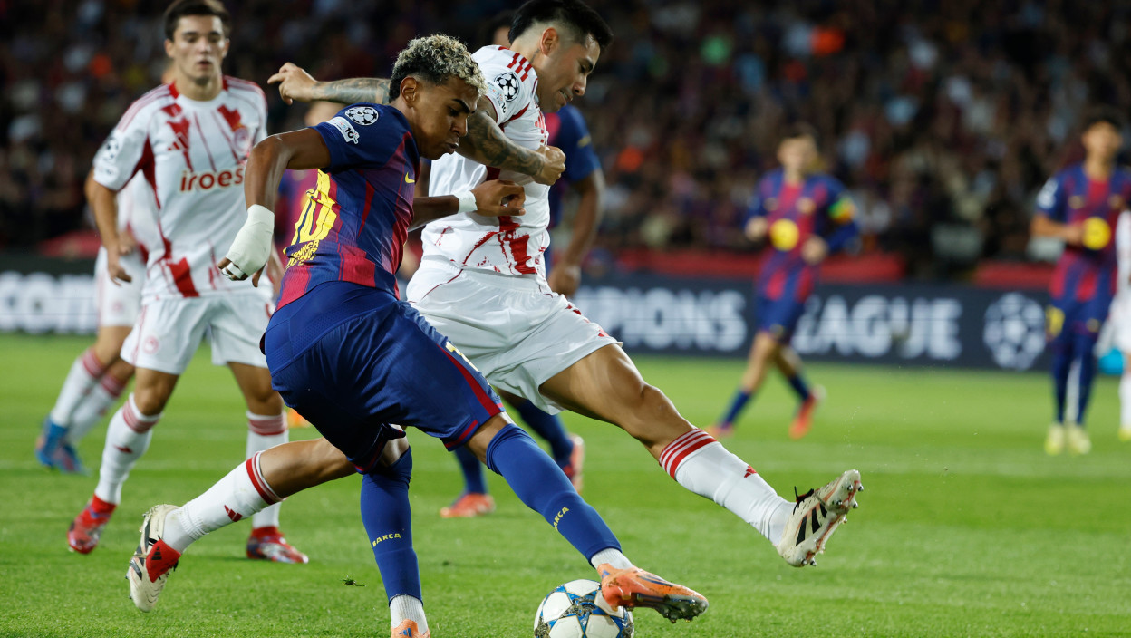 Барселона је много грешила током првих 45 минута, улазила у нервозу, што је Олимпијакос користио да буде опасност по Шченсног. Ипак, изабраници Хансија Флика су користили своје шансе.
