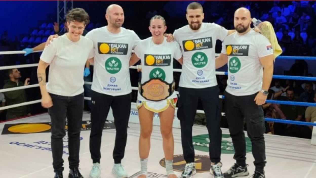 КИК-БОКСЕРКА НЕВЕНА СТЕФАНОВИЋ ПРОФЕСИОНАЛНА ПРВЕКИЊА СВЕТА: Српкиња у борби за шампионски појас у лоу-кику победила Гркињу Софију Кину