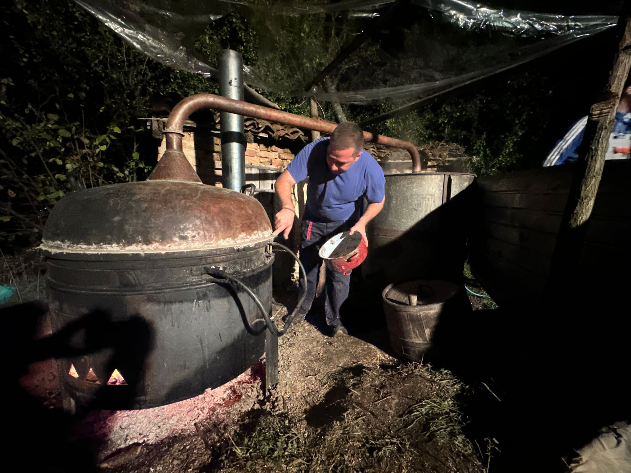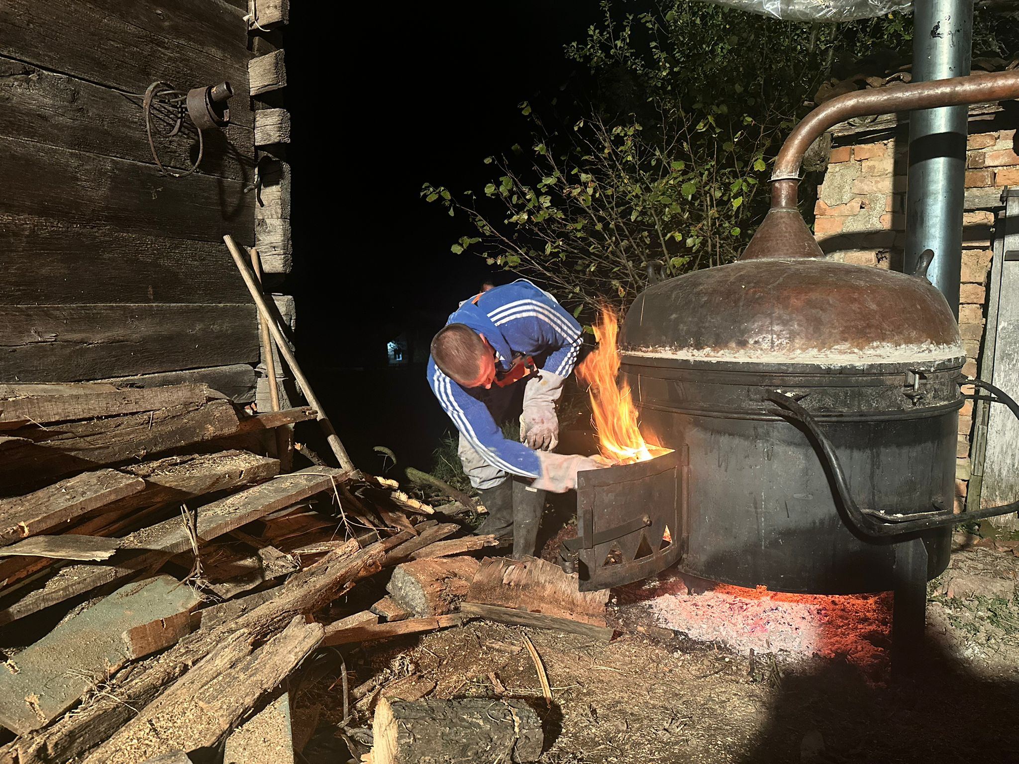 „Иако сам млад, не претерујем. Ово није мој казан, позајмљујем га од брата, а то се иначе наплаћује кроз ушур. Прошле недеље сам код њега пекао ракију, било је десет казана, сада он мени помаже. Можда укупно петнаест казана ове године, и то је довољно да се традиција не заборави и да ракија буде добра“, објашњава.