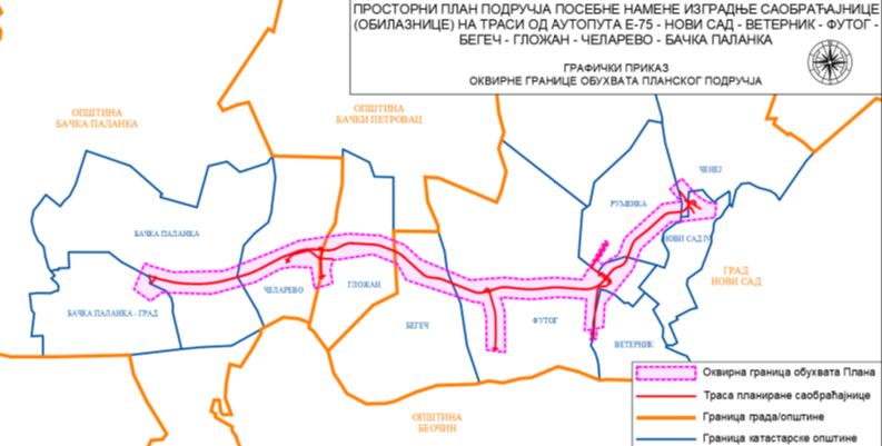 План је усклађен са Идејним решењем за потребе израде Просторног плана подручја посебне намене изградње саобраћајнице од Новог Сада до Бачке Паланке које је израдило привредно друштво „МХМ-пројект“‘ д.о.о. из Новог Сада, а инвеститор израде је Јавно предузеће ,,Путеви Србије’’. Просторним планом се дефинишу елементи (регулација, нивелација, парцелација) за реализацију трасе обилазнице општинског пута од аутопута Е-75 -Нови Сад до Бачке Паланке на територији Новог Сада и општина Бачки Петровац и Бачка Паланка.