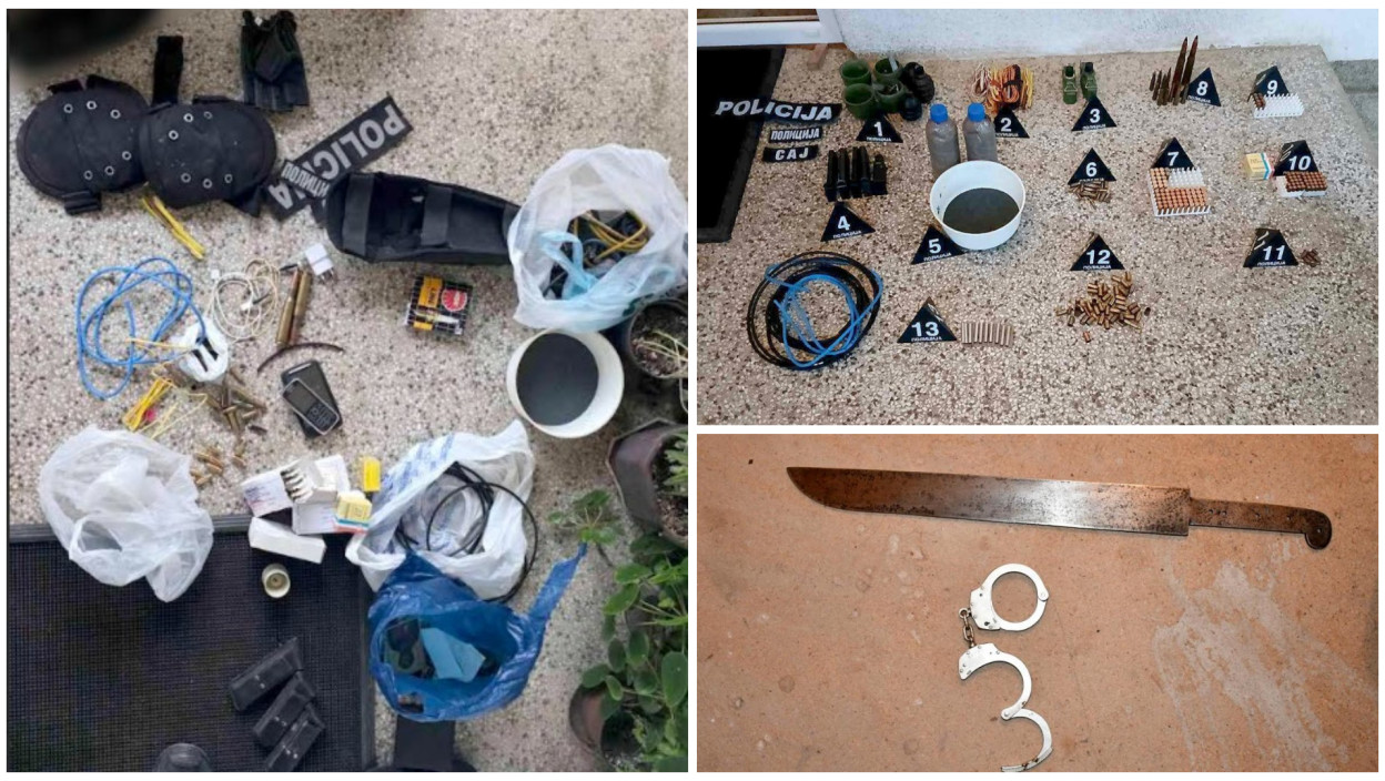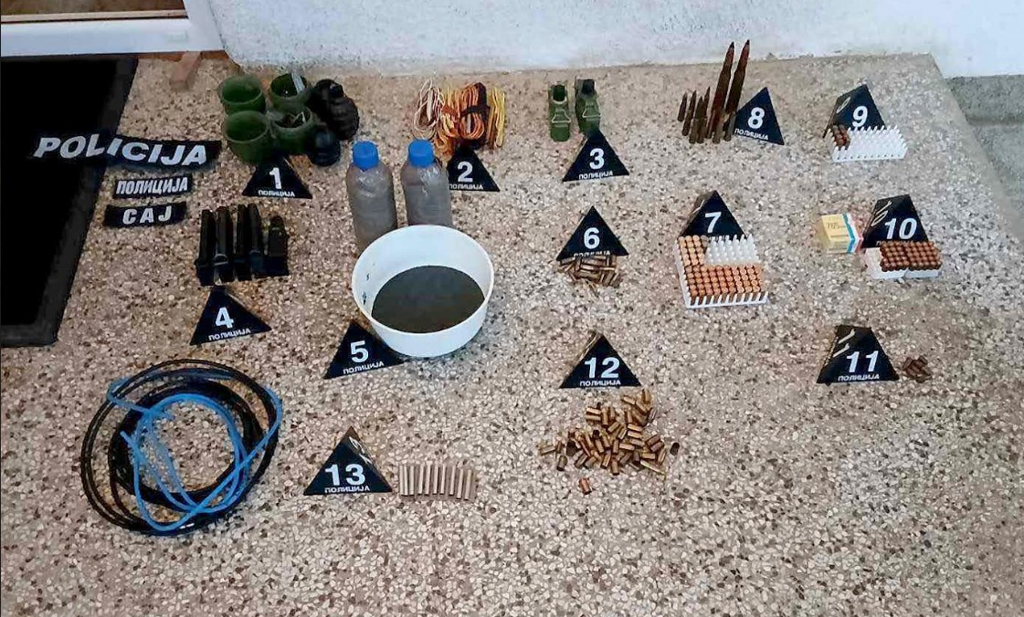 Одузете су две ручне бомбе, две кутије за ручне бомбе, једна мачета, 5 пиштољских оквира, преко 200 комада пиштољске и пушчане муниције различитог калибра,10 комада чаура, електронске каписле, два мобилна телефона, три полицијске ознаке, службена легитимација МУП-а, два пара службених лисица, једна гас маска, беретка са српским грбом и више комада војне гардеробе.
