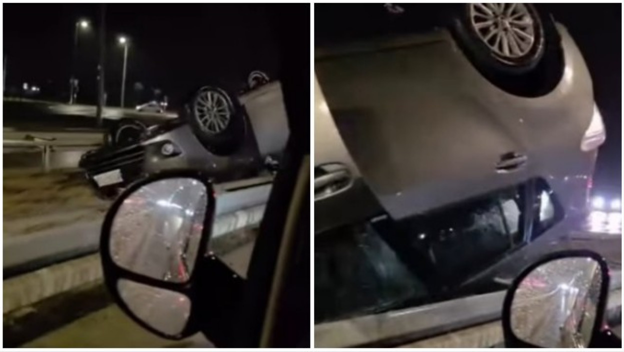 (ВИДЕО) ПРЕВРНУО СЕ "НАГЛАВАЧКЕ" НА КРУЖНОМ ТОКУ КОД АПТИВА Аутомобил „летео“ преко банкине, па се „дочекао“ на крову