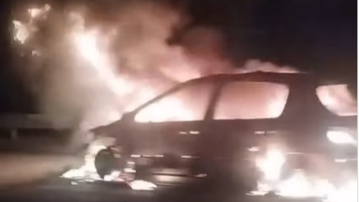 Како се види на видеу који је подељен на Инстаграм страници serbialive_vesti ватра је прогутала цело возило, а проширила се и на простор око банкине.