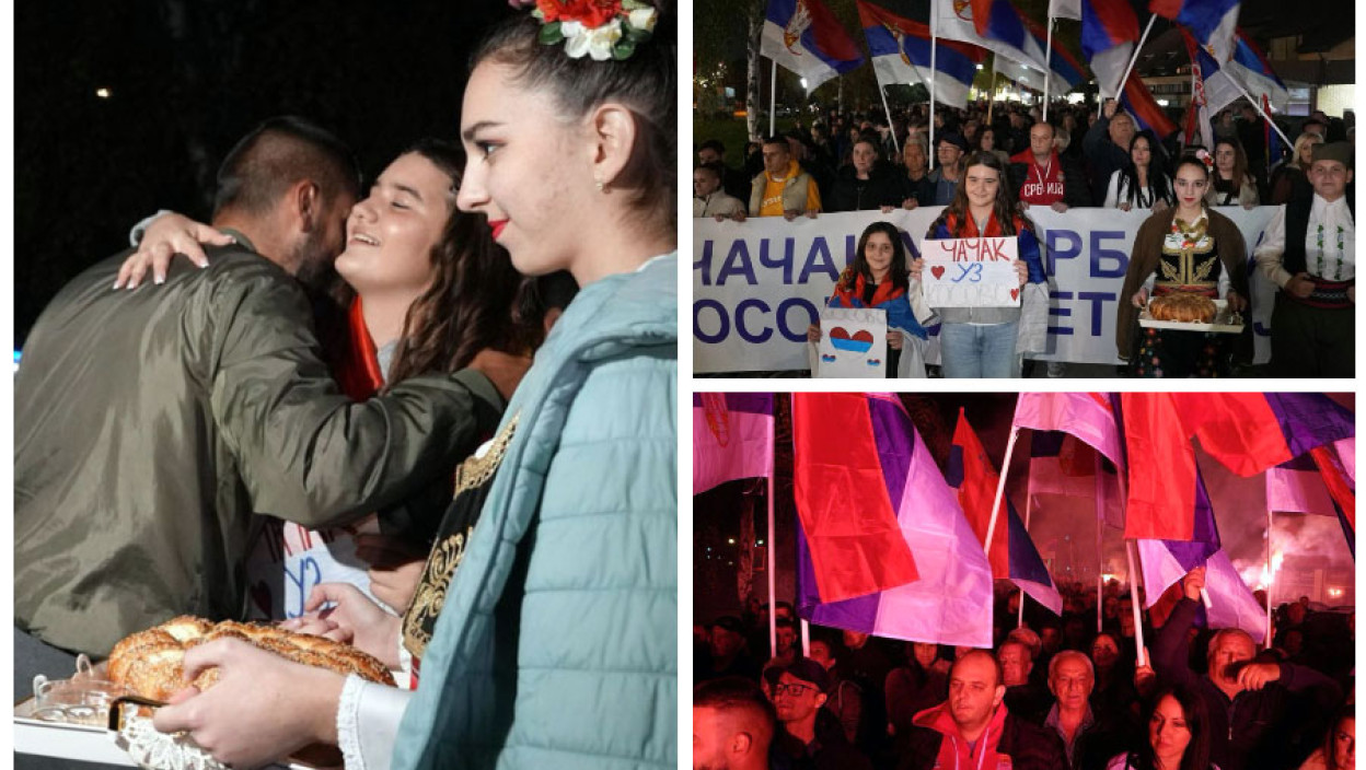ЧАЧАК: Више од 1.500 Чачана вечерас је у Прељини дочекало Србе са Косова и Метохије који већ три дана пешаче на велики народни скуп у Новом Саду против блокада.