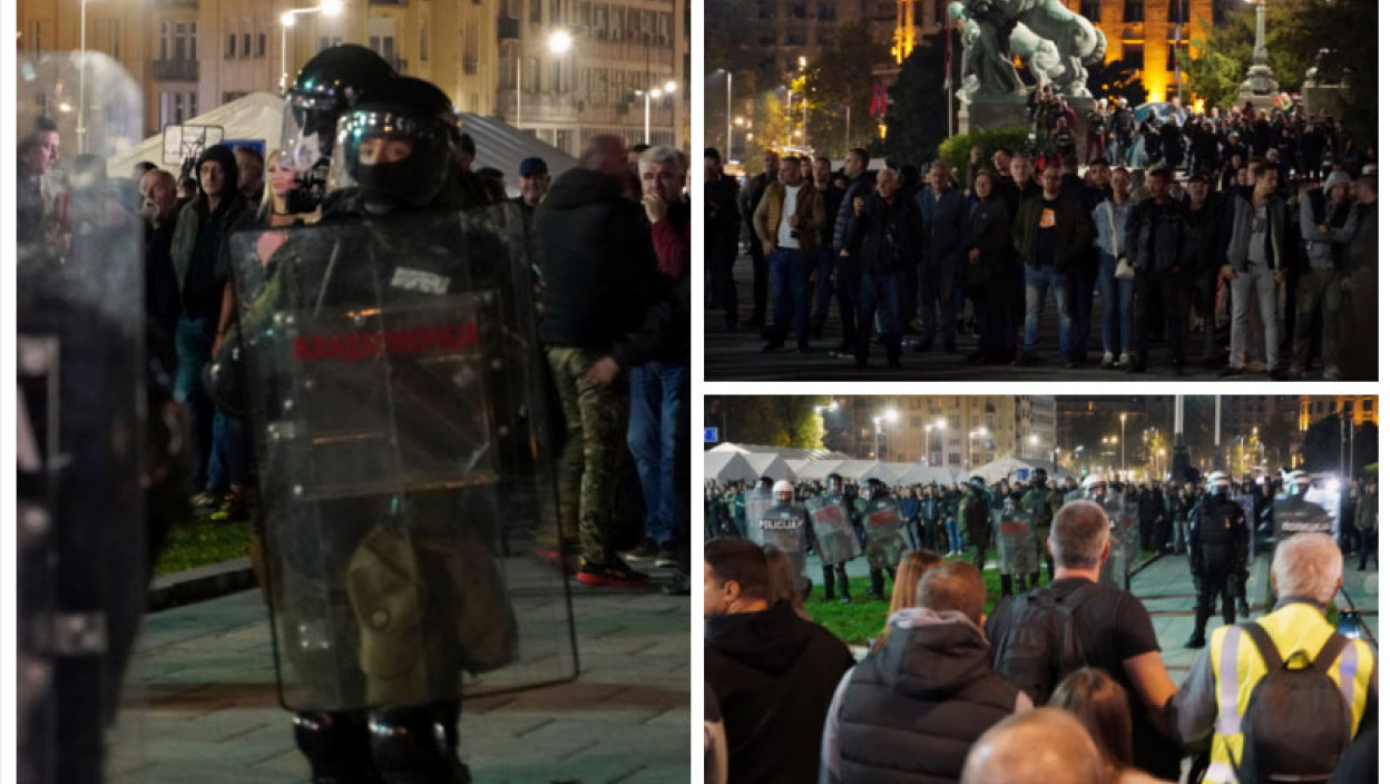 БЕОГРАД: Неколицина блокадера окупила се вечерас на платоу испред Народне скупштине, где покушавају да изазову хаос.