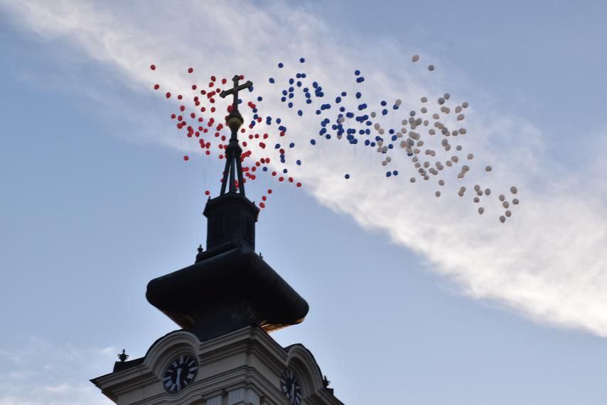 Шетња је званично кренула након интонирања химне "Боже правде" и пуштањем у небо балона у бојама наше заставе.