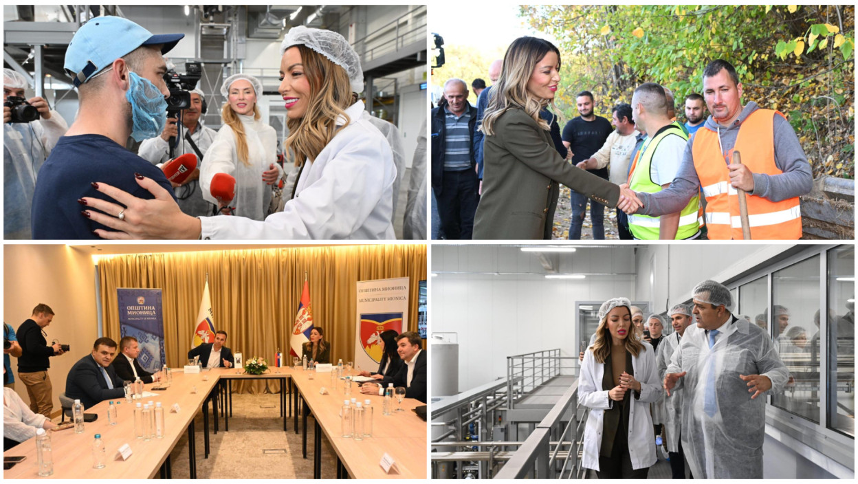 (ВИДЕО) МИНИСТАРКА МЕСАРОВИЋ У ПОСЕТИ МИОНИЦИ Посетила фабрику воде, обишла радове на асфалтирању пута у Берковцу, разговарала са привредницима и грађанима ОВО СУ ЊЕНЕ КЉУЧНЕ ПОРУКЕ
