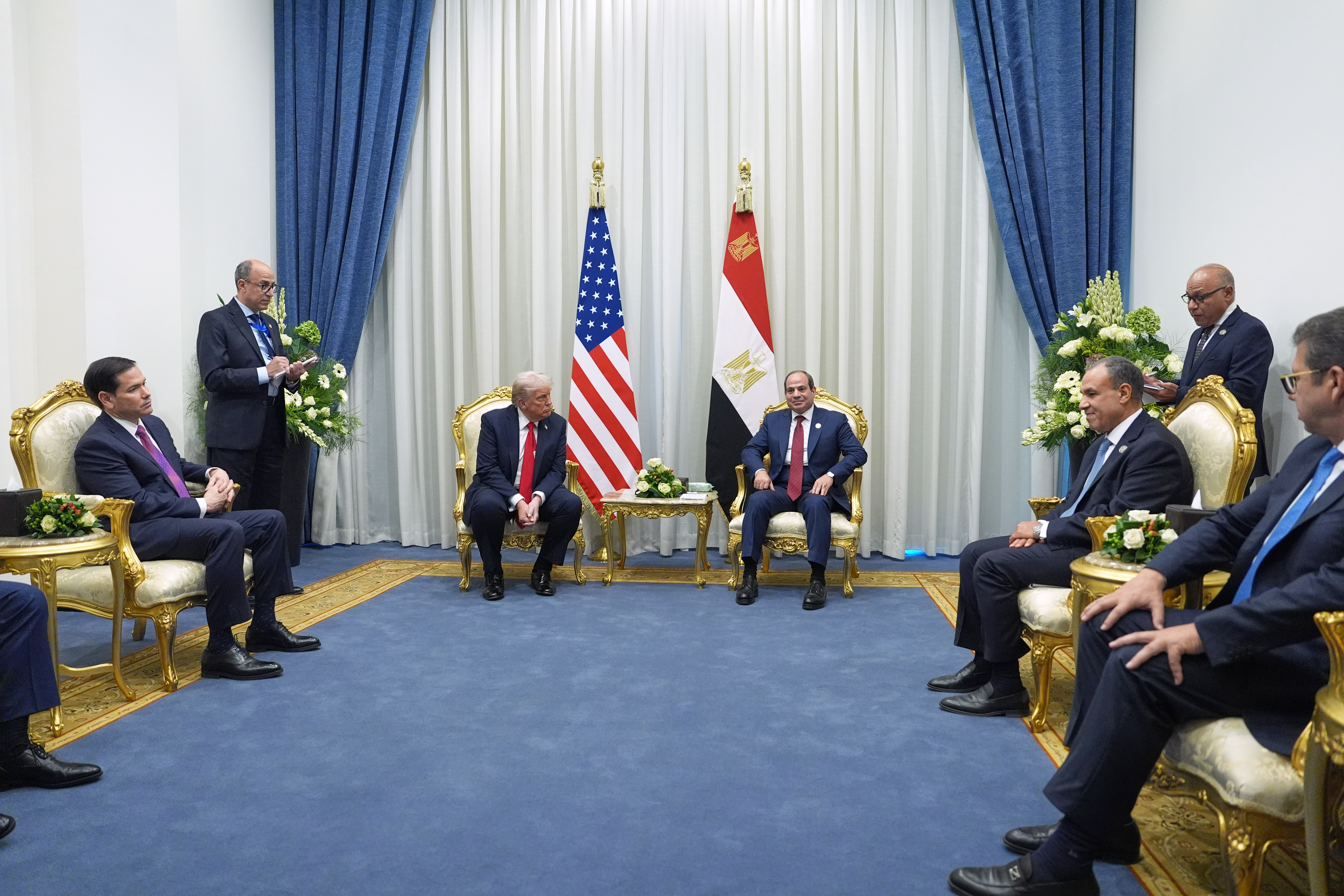 Председник САД Доналд Трамп похвалио је египатског председника Абдела Фатаха ел-Сисија у понедељак, док су се двојица лидера појавила заједно пред међународним самитом о споразуму за Газу.
