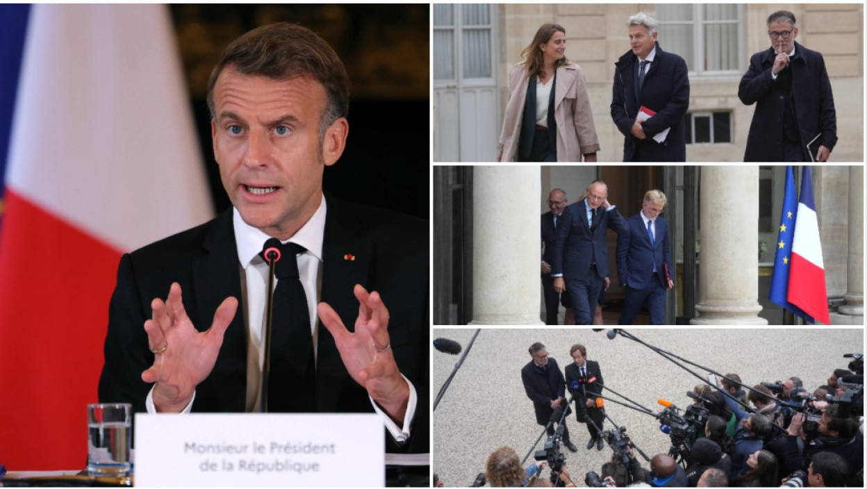 У Јелисејског палати у току је састанак са лидерима странака из центристичког блока, којем не присуствују лидери Националног окупљања и Непокорене Француске.