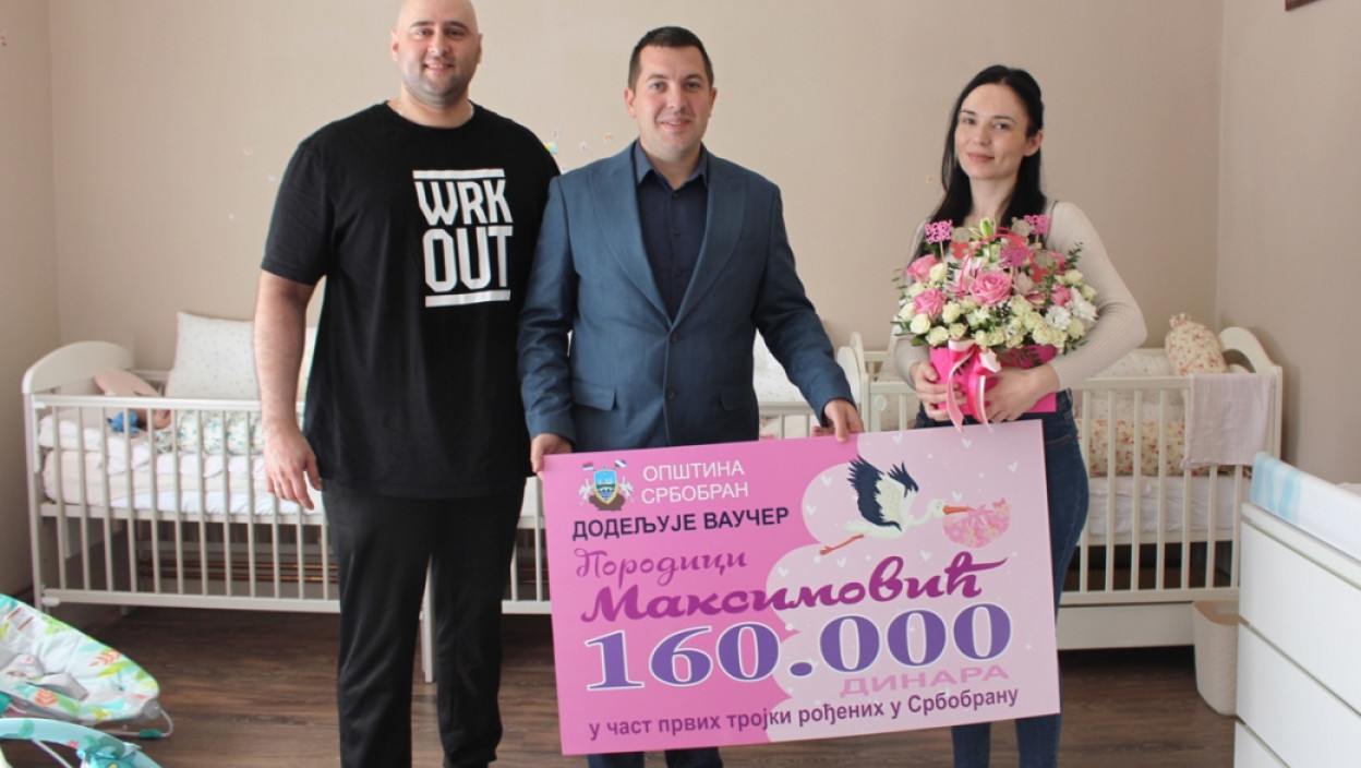 Млади брачни пар, Драгана и Горан Максимовић, добили су три ћерке, Тару, Милу и Нађу, које су, иначе, прве тројке рођене у Србобрану. У знак пажње и уз најлепше жеље, локална самоуправа издвојила је 160.000 динара, уз додатну опрему за подршку у подизању новог нараштаја.