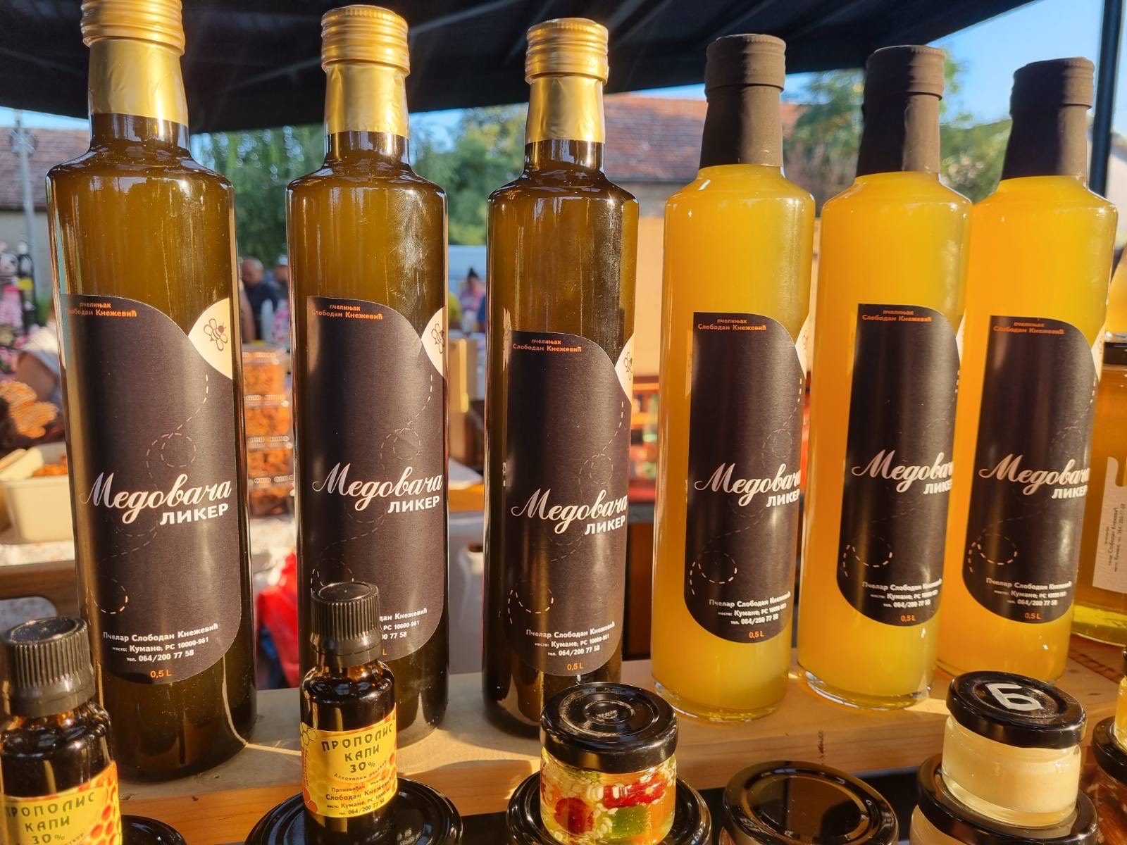 Данас у понуди има пет врста меда - липов, од липе са Фрушке горе, сунцокретов, ливадски, од уљане репице и микс сунцокрета и липе. Производи и бронхи мед и разне врсте медног намаза, па у понуди има чоко мед, мед са воћем, бананом, јагодом и малином, са кандираним воћем, са циметом... Производи и медовачу, ликер од меда, а за манифестације и базаре, на којима је редован учесник, Слободанова супруга направи и пригодне свеће.