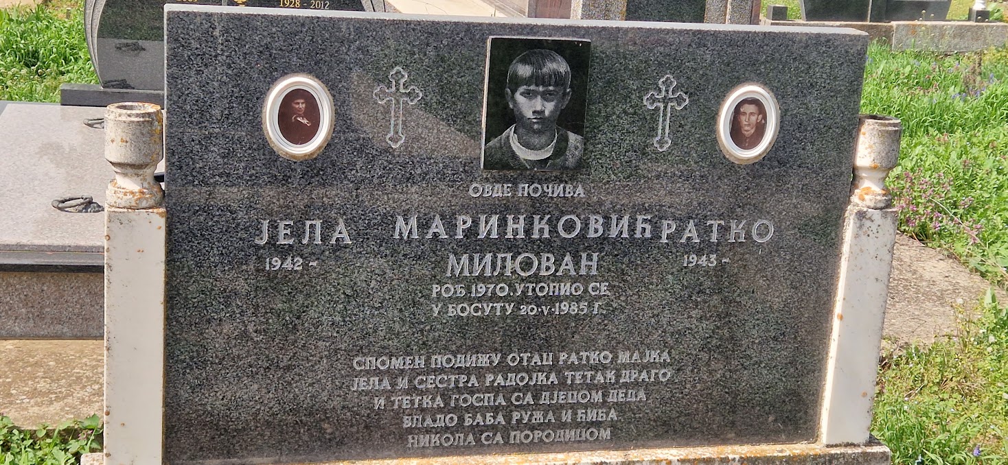 На сеоском гробљу поред споменика Филипу Вишњићу пражњу ми привлачи још један који опомиње да Босут осим што је леп зна да буде и опасан. Родитељи Јела и Ратко на гробу од црног мермера оплакују 15-годишњег дечака Милована Маринковића који се 1985. утопио у овој реци.