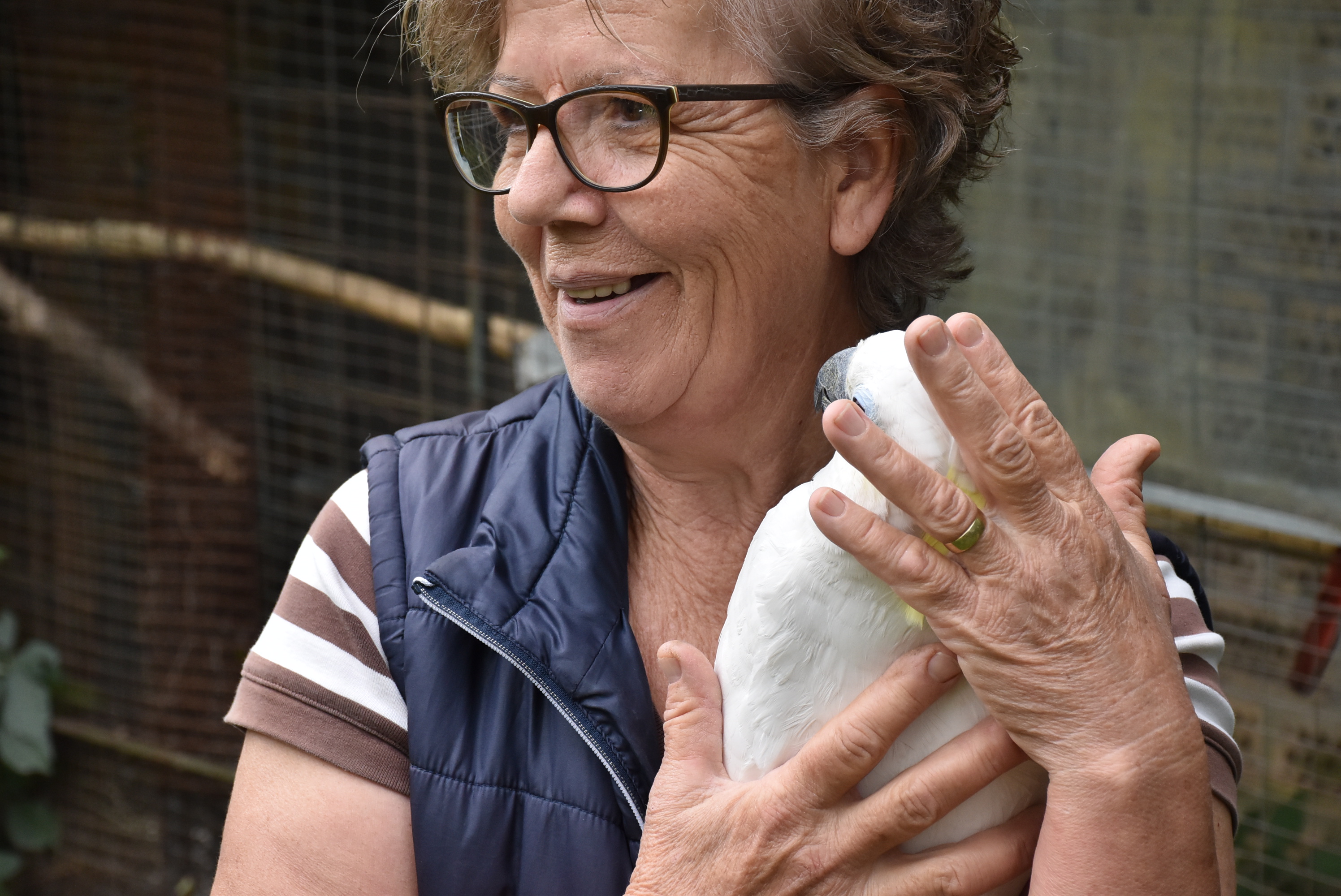 И заиста папагај је миљеник брачног пара, јер чим приђу њеоговом кавезу, одмах је спреман за мажење, док остали становници у кавезу поред, љубоморно негодују.