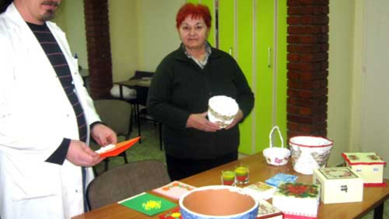 - Уколико смо у могућности укључујемо се у терапију у оквиру радионица, али многи раде и код куће оно што их занима и што могу. На радионицама се пуно може научити, јер су радни терапеути веома предусретљиви. Ја претежно радим декупаж, маске за саксије, кутије и друго. Сада је било актуелно прваљење украсних свећа пред празнике – сазнајемо од Мирјане Јанчић.